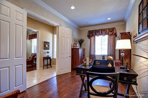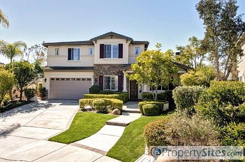 Complete info: http://3051caminoserbal.IsNowForSale.com - Gorgeous home on cul-de-sac with large private backyard. Canyon views to the south for plenty of sunshine. Highly upgraded with beautiful distressed wood floors throughout. High-end Viking appliances, built in refrigerator and wine fridge. Large pantry and butlers pantry. Spacious eating area and work station off kitchen that opens to family room. Private office downstairs with doors and huge closet. All secondary bedrooms have walk-in closets and attached bath with slab granite countertops. Master bedroom and bath with beveled glass window detail and canyon views. Backyard opens to canyon preserve with 2 fountains and private sitting area. Plenty of room for the kids to play in open grass area. La Costa Valley neighborhood offers community pool, spa, tennis and gym. Award winning schools.