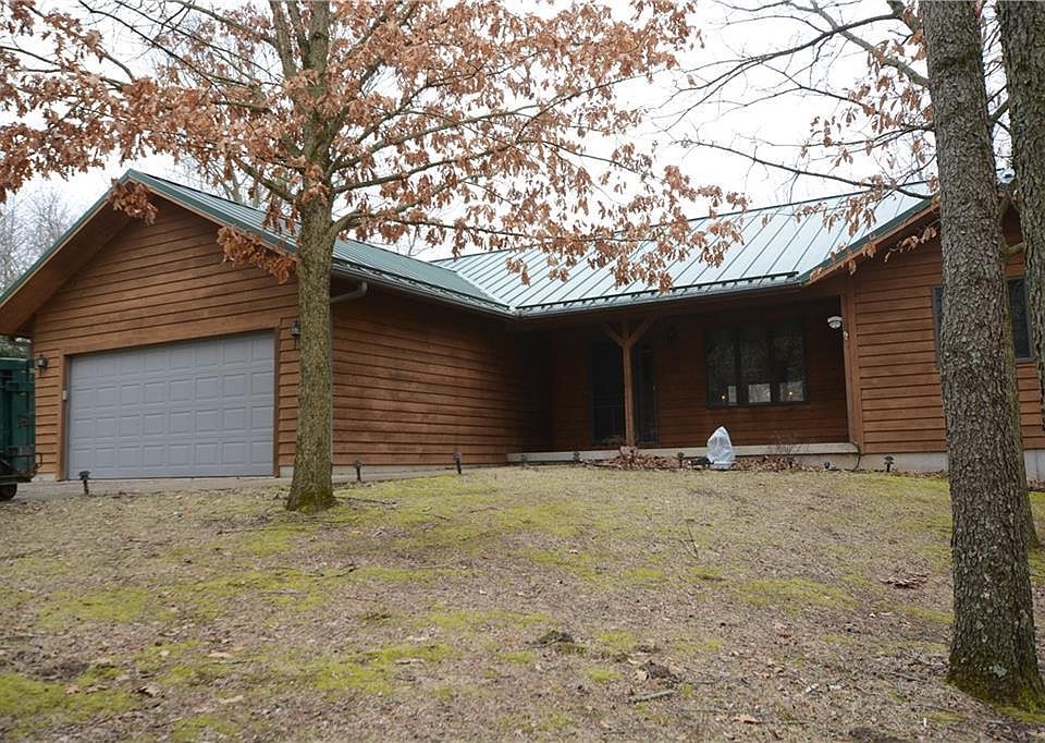 Very open concept Ranch on a Superb Lot! Huge great room offers a fireplace with heat fan to heat the house, Kitchen dining area walks out to a large deck overlooking wooded 3.47 acres! Master Bedroom has trayed ceiling with spacious bath. Main Floor laundry is conveniently located. Basement is finished with wet bar, bath and extra office room. Metal roof was installed approximately 10 years ago. Singulair septic system has been well maintained. This home was cusotm built for the current owner.