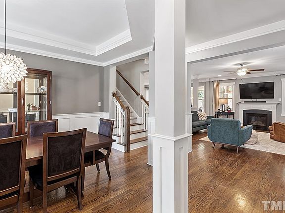 NEW PRICE! This beautifully maintained one-owner Craftsman style home in popular Heritage East was built with entertaining in mind! The front porch & rear screened porch offer delightful spaces for starting or ending your day, while the spacious main level has an open layout & features a chef's kitchen w/ large granite island, tons of counterspace/cabinetry & SS appliances, flowing seamlessly into the family room, sunroom/breakfast area & formal dining room. A convenient drop zone & half bath are tucked between the kitchen & garage entry. Wide horizontal blinds and warm wood floors compliment the 1st floor, while the 2nd level features 3-years-new neutral carpeting, a huge primary suite w/ tray ceiling & sitting area perfect for your home office, plus 3 additional bedrooms & 2nd-floor laundry room. The 3rd floor finished bonus room has built-in bookshelves & is complete w/ a full bath - ideal for 5th bedroom, teen hangout or workout space - & 2 floored attic storage spaces! The private .36-acre lot is convenient to parks/greenways/shopping/restaurants/schools. Welcome home to all that Heritage has to offer!