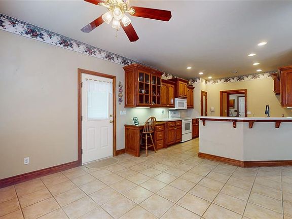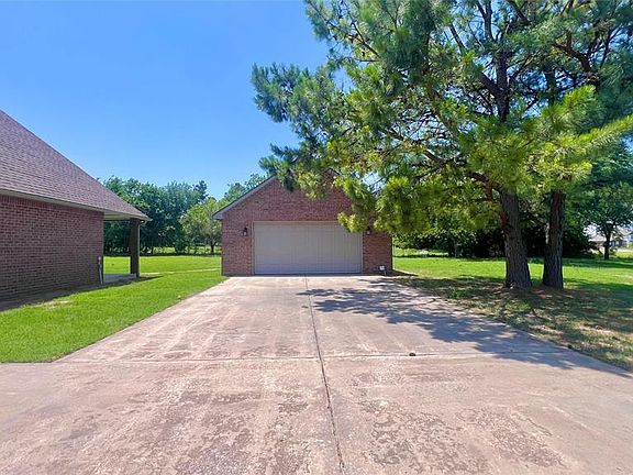 Seller will pay up to $4000 in seller concessions with an acceptable offer on the must see dream home nestled on 2 acres of serene land, tucked away in a cul-de-sac. As you approach, you're greeted by a grand circular driveway, providing ample space for parking. With 4 garage spaces, including two attached and two detached, there's plenty of room for vehicles. The inground storm shelter ensures peace of mind during inclement weather. Enjoy outdoor living with a fenced-in area around the patio, perfect for pets. The unfinished bonus room above the garage offers endless possibilities, accessed via a convenient walk-up staircase from the garage. Entertain guests in the formal dining room situated at the front of the home, while the kitchen serves as the heart of the household. Complete with an eating space, breakfast bar, pantry, and a suite of modern appliances including a built-in microwave, electric stove with a five-burner smooth surface cooktop, and a self-cleaning convection oven. Under cabinet lighting adds ambiance and functionality, while a dedicated desk area provides convenience for household tasks. The office is a haven of productivity, furnished with a desk, bookcases, and a walk-in closet for organizational ease. Retreat to the master suite, featuring a walk-in closet with built-in dresser, and a luxurious full bath with double vanities, step-in shower, and a jetted tub for ultimate relaxation. Two secondary bedrooms share a Jack-and-Jill bathroom, each boasting a walk-in closet for ample storage. The large laundry room is equipped with gas and electric dryer hookups, cabinets, countertop space, and a sink for added convenience. Outdoor living is a delight, with a fenced-in patio accessible from both the master bedroom and eating space, as well as a second patio offering additional space for outdoor enjoyment. This meticulously maintained home offers the perfect blend of comfort, convenience, and luxury, ready to welcome you home. Newer roof and HVAC.