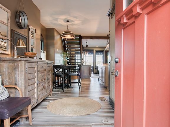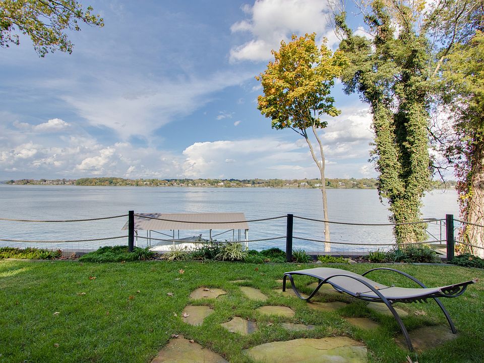 "The View" 180 degrees and feels like you are sitting right on the Water. Covered Patio on Basement Level, Screened Deck on Main Level and Covered Porch/Deck off the the 23 x 24 Primary Bedroom Upstairs. Office/exercise Room adjoins the Primary Bedroom. Kitchen with Island, Den with Fireplace and all glass doors over looking the Lake. Wrought Iron Rails thru out the house. 22 x 28 Dock with 6+ feet water depth