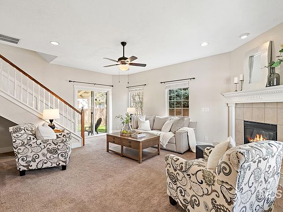 Welcome to your new home! Nestled in a peaceful cul-de-sac within the highly sought-after Tumble Creek subdivision, this stunning residence offers four spacious bedrooms, 2.5 baths, and an impressive bonus room that offers endless possibilities. Boasting real hardwood flooring and a functional kitchen island, the kitchen is perfect for entertaining or cooking. Additional features include an oversized 3-car garage, cozy gas fireplace, and a covered patio, providing those special touches that make a house a home. The master suite boasts vaulted ceilings, a large walk-in closet, and dual vanities. The bonus room is truly a showstopper, with three large windows that flood the space with natural light. This expansive room offers versatility and can be used as a game room, office space, additional bedroom, or second family room. Conveniently located just 15 minutes from the Village at Meridian and with easy access to HW 84, this home offers an exceptional location. Plus, washer, dryer, and fridge are included.