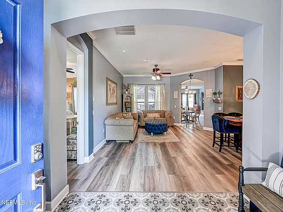 Situated on a quiet, low-traffic street just steps from the community's premium amenities center, this home also features brand-new flooring throughout the first floor and a custom stone fireplace with a beechwood hearth and mantle - adding warmth and character to the spacious living area. Conveniently located near Lake Asbury Elementary and Junior High Schools and with easy access to metro Jacksonville via the nearby First Coast Expressway, this home delivers both location and lifestyle. Community highlights include:(A state-of-the-art fitness center, beach volleyball and tennis courts, children's playground, lap pool, splash pad, resort-style zero-entry pool, two-story waterslide, and indoor/outdoor party spaces - perfect for making every day feel like a vacation. Don't miss this rare opportunity to own a large, updated pool home in Rolling Hills at such a remarkable value!