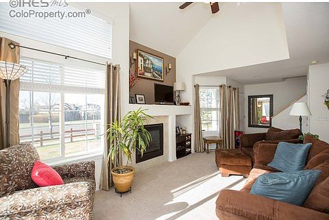 Light, bright & cheery end unit townhome in Southeast Fort Collins. Conveniently located to several parks, walking paths & shopping. Easy access to I-25 & within walking distance to schools. Vaulted ceilings allow for plenty of natural light to pour in. Finished basement offers an additional bathroom & family room (could be 3rd bedroom) with built-in shelves. 1-car detached garage is included. Pre-inspected & 14-month Blue Ribbon Home Warranty.