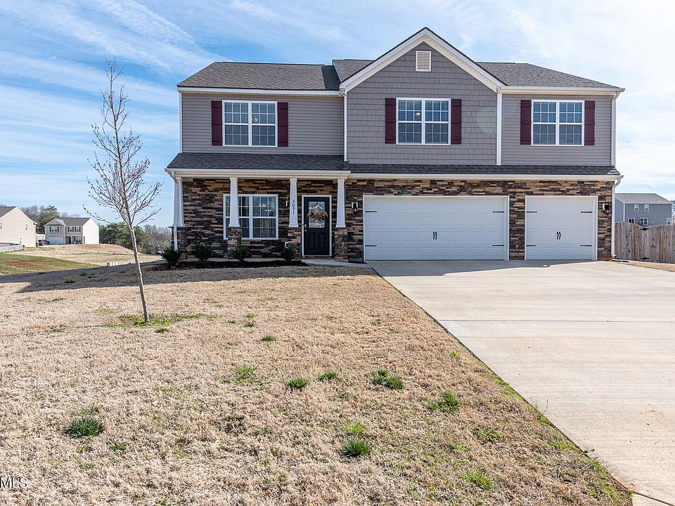 This gorgeous corner lot 5Br 3.5Ba home boast nearly 3,500 sqft offering open kitchen/living rm and a huge bonus rm perfect for entertaining. The main level holds the eat-in kitchen/open living rm, dining rm, utility rm, br/office and .5 bath. Upstairs you will find an over-sized master BR with an additional 3br as well as the gigantic bonus rm with endless potential. Other features include- Hardwood flooring throughout the main, upgraded kitchen w/ granite tops, stainless steel appliances, tile back splash & island, gas fireplace, walk-in closets & pantry. Smart home capabilities such as ring doorbell, Wi-Fi thermostats, security system with cameras. Large .75 acres corner lot with privacy fenced back yard, oversized driveway and 3 car garage. Come view today!