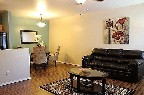 Are you looking for a Furnished Rental in the Rio Rancho area then look no further!Welcome home to this beautifully fully furnished condo. The abundantly stocked kitchen (Includes: Pots, pans, towels, coffee maker, blender, dishes and more)Â with newer appliances, a gorgeous dining room, a super comfortable living room, high definition flat screen television and a DVD player. It is completed with a remote controlled fireplace adding ambiance and warmth. During the summer you will enjoy the refreshing refrigerated air conditioning, no swamp coolers in this luxury home! The main bedroom has its own private patio, a cozy bistro so you can enjoy the beautiful New Mexico Skies, sunsets, and fresh air. The bedrooms have top of the line pillow-top mattresses and premium quality bedding, as well as towels. No need to go to a laundry mat, this lovely home comes with a full sized washer and dryer! As if that wasn't enough you also have your own two car garage. This home is in a highly desirable location right off of Southern and Golf course, close to many restaurants, movie theaters, hospitals, grocery stores and shopping. You will find all you need.