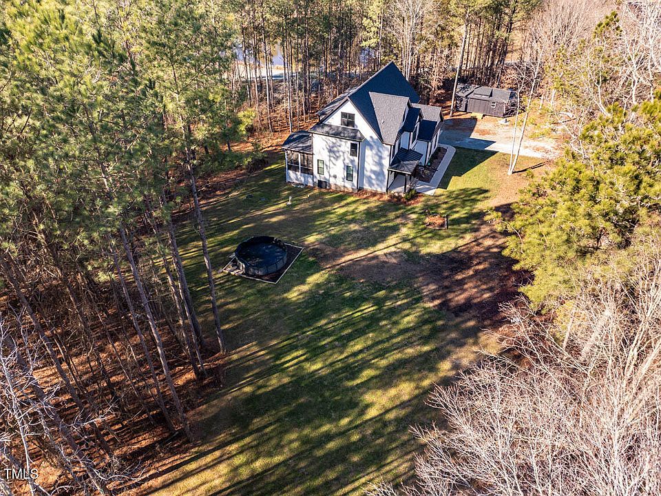 Built in 2022, this green-certified modern farmhouse on 2 wooded acres in Herndon Creek offers privacy, charm, convenience, room to grow & low-maintenance exterior. The main level features a guest/in-law suite, separate study w/ French doors, 2-car garage, and spacious open living area with hardwood floors, gas fireplace & 12x16 screened porch. The central kitchen has granite counters, stainless appliances (including gas range & fridge), tile backsplash, soft-close cabinetry & island w/ extra seating. In addition to 2 bedrooms and rec space upstairs, the spacious primary suite is impressive with its two walk-in closets, ceiling detail, dual vanity, soaking tub & separate tiled shower. Don't miss the laundry room and its folding area, floating shelves & upper cabinets. Walk up to an unfinished 3rd floor for additional storage and expansion potential. Other features include shiplap, wainscot, and built-in trim details throughout, window treatments, an above-ground pool, privacy fence, detached storage shed, gutter guards, covered front porch & rear grilling patio. Conveniently located near Pittsboro/MOSAIC (5min), Chatham Hospital (16min), UNC Hospital (23min), Sanford (25min), Burlington (30min), RTP (33min) & RDU Airport (34min). VIDEO: tinyurl.com/3051NC87