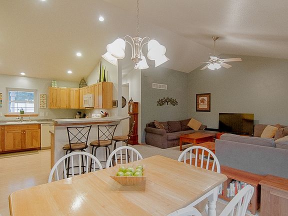 Excellent 4 bedroom, 3 bath home on over half an acre in Timberline Estates, wooded views. Open concept LR w/vaulted ceilings, gas FP w/tile surround. Spacious kit w/breakfast bar, hickory cabinets, pantry & appliances staying. DR w/ patio doors leading to patio & pergola. Master suite w/vaulted ceilings, W-I closet, master bath w/whirlpool tub, W-I shower & double sinks. 2nd bedroom & laundry room complete the ML. Large LL family room, 2 conforming bedrooms, bathroom & bonus storage rooms complete the LL.