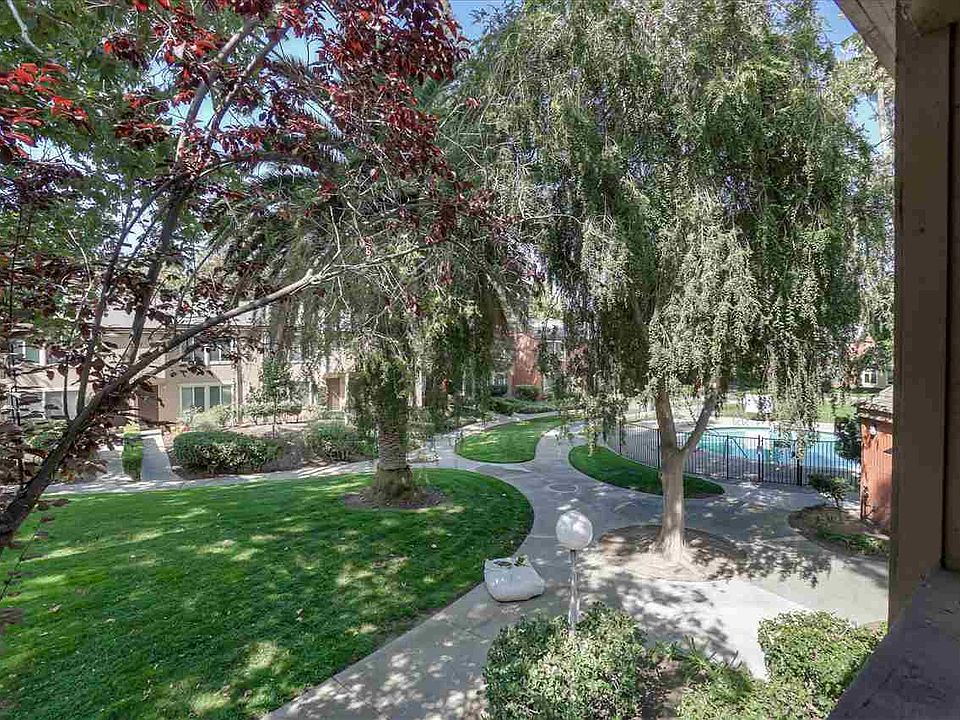Throw away the car keys! Tucked off of street w/ view of swimming pool & garden. Fantastic opportunity for this move-in ready condo within walking distance to everything! Boasts new flooring & paint thruout. Spacious & bright eat-in kitchen w/ loads of cabinets! Separate dining area. Living room with open beam ceilings & gas fireplace. Laundry & assigned parking directly downstairs! Transportation in front of the building. Great walking distance to great restaurants, Trader Joes, Nob Hill Foods, salons, hiking & biking trails. Relax by the pool on hot summer days!