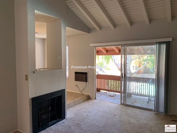 Spacious 2bd/2ba upper level end unit condo in great Concord location! Approx. 963 square feet of living space, great location in complex, close to community laundry and pool 10;New paint and carpets 10;Close to shopping and restaurants 10;Kitchen features electric stove, refrigerator, dishwasher, garbage disposal and plenty of cabinet space. Adjoining dining area and living room with exposed beam, vaulted ceilings, fireplace (decorative only), and slider leading to deck that overlooks common area/ pool. Bedroom 1 is good sized with standard closet. Hall bath with shower-over-tub. Master bedroom is large and features 2 closets, one is a walk-in and private bath with step-in shower. Wall Unit Heat/AC. Community laundry near unit. 2 assigned parking spaces. Water, garbage and HOA dues included. No smoking. No pets. (925) 998-8133