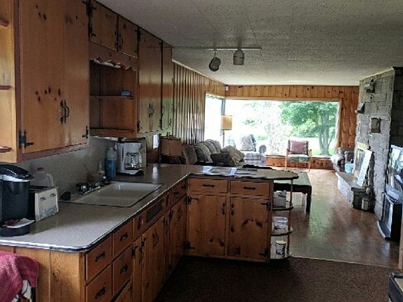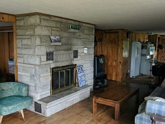 Major Price Reduction. This home has 4.75 acres including a 1 acre lakefront lot with 65' of waterfront to dock your boat. The home has 2 bedrooms 1 bath wood burning fireplace and full basement with an attached garage (16x24) with a nice size patio, there's a (28x40) pole barn and a detached garage (24x30) barn is not in the best shape (16x24). All appliances will stay.