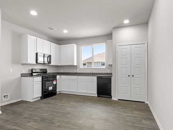 Welcome to this beautifully designed 1,191 square foot new construction home, offering a blend of coziness and comfort with thoughtful upgrades such as 42-inch kitchen cabinets and a single basin sink. The primary bedroom, located at the back of the home, offers much needed privacy, creating a quiet retreat away from the main living space. A walk-in shower adds to the perfect setting for a relaxing end to the day. Ample secondary closets provide great storage solutions. An alley access lot with a 2-car detached garage adds to the charm of the home. Built Net Zero ready, this home is packed with energy-efficient features for huge savings! Enjoy an electric car charger receptacle in the garage, a tankless water heater, low-flow toilets, all Energy Star appliances and a solar panel-ready roof. All designed for sustainability and lower utility costs. Casetta Ranch, the award-winning community based in Kyle, is an oasis to relax. Explore the community amenity center, swimming pool, playground, park, or nearby restaurants. There's even a high school within walking distance.