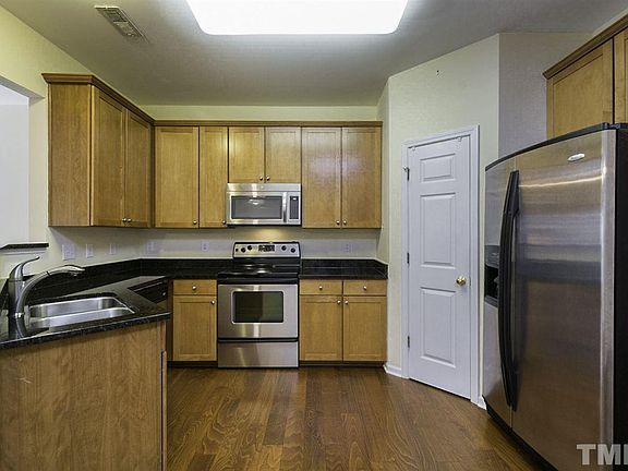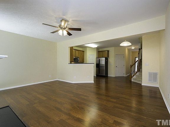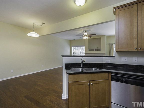 This Raleigh two-story townhome offers fireplace, breakfast bar, master bathroom dual sinks, and a one-car garage.