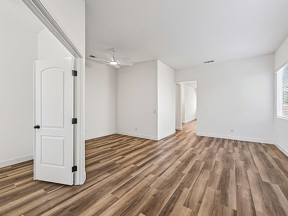 Central Park Murrieta Single-Story home 3-4 Bedroom and 2 Bathroom with freshly painted interior and exterior, new Stainmaster luxury vinyl plank flooring, updated fixtures, and brand new stainless steel stove top and refrigerator. The open-concept kitchen features a large island with bar seating and generous cabinetry, flowing into multiple living spaces, including a family room, a living room, and a versatile den/office or 4th bedroom. An indoor laundry room, and a two-car garage. This community has access to a clubhouse, pool, spa, large park with Gazebo , Outdoor BBQ, pickleball and tennis courts, scenic walking trails, playground. The private backyard offers a covered patio, lush landscaping, and no rear neighbors, providing extra space between homes.