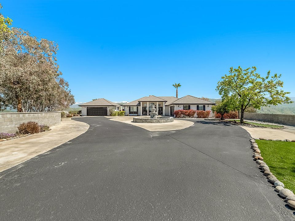 Poised high atop a hill, this gem boasts jaw-dropping 360-degree views of the Central Valley. Rich in privacy behind gates and up the long exclusive driveway, this residence of unparalleled magnitude is revealed. 15 acres, situated in a world of its own overlooking the stunning Sierra Nevada Mountains, this home is the epitome of regal living. Being offered on the market for the first time, by the original owner. High ceilings, ornate wood detail and grand-scale views are showcased beyond the luxurious entrance. Highlights include an open floor plan, a newly updated kitchen with an adjacent light and bright formal dining room with views to the pool and mountains, an impressive living room with a gorgeous bar and fireplace, a billiards room, and a formal sitting room. Among the many jewels of this home is an entertainer's paradise. The backyard consists of a sparkling pool and spa, outdoor kitchen, putting green, a garden, koi pond, and endless places for dining al fresco. This tranquil oasis is quintessential to the highest class of luxury living, built for those who hold design and beauty in the highest regard. Own and paid solar.