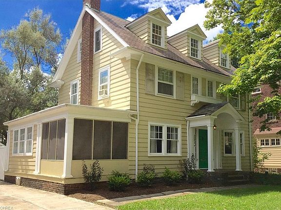 Traditional Center Hall Colonial in the desirable Onaway neighborhood. This 5 Bedroom 2.5 Bath home has character and charm throughout with stunning crown moldings and hardwood floors. Large living room with elegant mantel and wood burning fireplace with gas starter. Huge formal dining room with chair rail. Cozy family room on first with custom shutters. Bright, white kitchen with stainless steel appliances, cork floors, and breakfast room with butler's pantry. Darling, screened sun porch off the living room. Spacious Master bedroom. Dream custom bath on second is a real show-stopper. Modeled after the Ritz Carlton, it boasts Carrera marble throughout with a large spa shower with built-in bench and frameless doors, white vanity with double sinks, Kohler and Restoration Hardware polished chrome plumbing and light fixtures, and heated floors. Three additional bedrooms on the second floor with ample storage and built-ins. The third floor is a fabulous suite with a huge bedroom, updated full bath, and bonus room that would be an ideal office or craft room. Newer boiler, hot water tank, and concrete drive. Security system. Large fenced yard with brick patio. A Classic Shaker Heights home!