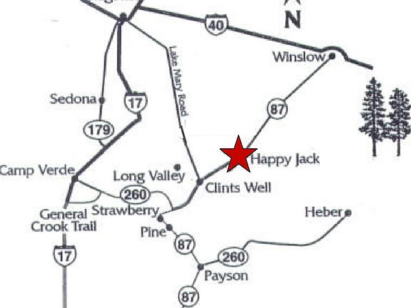 Have you dreamed of having your own log cabin in the Ponderosa Pines? Here it is, about 2,000 square feet, all on level, with 3 bedrooms and 2 baths, open Great Room with vaulted ceilings in Tamarron Pines, Happy Jack, Arizona. Huge covered back deck and open front deck to enjoy the outdoors and an ATV shed with a ramp for your forest toys.