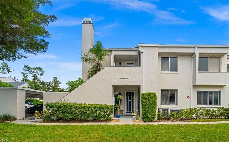Step into this move-in-ready 3-bedroom, 2-bath first-floor end unit, tucked inside the sought-after community of Camelot at Kings Lake. Just 4 miles from Naples’ white-sand beaches and minutes from Fifth Avenue’s dining and shops, this home combines modern comfort with an unbeatable lifestyle. Inside, you’ll find a bright, open floor plan finished with sleek porcelain tile throughout. The kitchen features newer stainless steel appliances, granite counters, and a stylish tile backsplash - perfect for both everyday meals and entertaining. French doors and plantation shutters bring extra character and charm. The light-filled enclosed lanai has expanded the home’s living space - ideal for morning coffee, reading, or quiet evenings at home. And for those who still love true Florida outdoor living, you’ll enjoy a private patio surrounded by lush tropical landscaping. The spacious primary suite offers expansive space including a walk-in closet and en-suite bath. Two additional bedrooms provide space for guests, family, or even a home office. Both baths have been tastefully refreshed, blending style with function. A brand-new water heater, oven and dryer adds peace of mind, while covered parking, two secure storage closets, and an additional cubby for bikes or beach gear make life convenient. Best of all, the sparkling community pool and spa are just steps away - only 30 seconds from your front door. Living here means more than just a home; it’s a lifestyle. Residents enjoy a heated pool and spa, clubhouse, walking and biking trails around a serene 33-acre lake, plus access to tennis and pickleball courts through Kings Lake. Whether you’re searching for a full-time residence, seasonal retreat, or investment, this condo is a rare opportunity in one of Naples’ most popular communities. Don’t miss your chance to claim this move-in ready home in the heart of it all. Schedule your showing today!