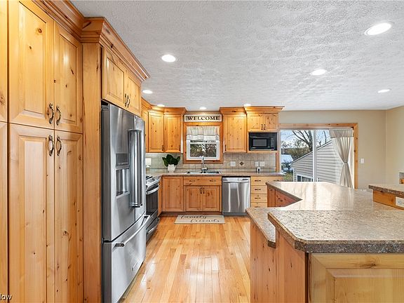 This meticulously cared-for home features eat in kitchen, has all stainless steel appliances and beautiful custom cabinets w/ center island, tile backsplash, and hardwood flooring. A sliding door from the kitchen leads to a patio, perfect for entertaining. Inside, down a few steps to the cozy family room including a wood burning stove w/ vent fans, through a patio door leading to the 4- seasons/sun room w/ a pellet stove for enjoyment year round. A large mud room and a full bath area that walks up into the 2 car garage. Or down a few steps to find laundry/mechanical area with ample storage space. Upstairs are 3 nicely sized bedrooms and a bathroom. Since Purchasing the owners have replaced or added windows, front porch floor & roof, front door, new locks, block windows in basement, 4-season/sun room, sliding doors, siding, roof, woodshed, well pump, kitchen appliances, generator hook up, air compressor, water heater, remodeled kitchen and bath, electrical subpanel for kitchen, furnace, A/C, water softener, sump-pump with battery backup, new garage floor, garage door and opener w/ battery backup, water proofed side of home, added back patio, new driveway, pellet burner. Schedule a showing today!