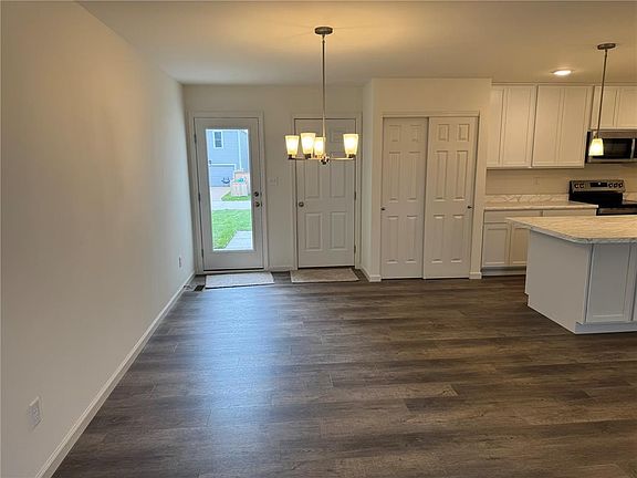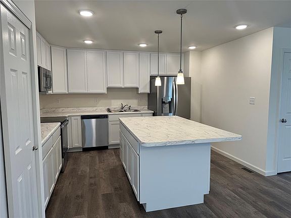 Brand new 4 bed 2.5 bath 2 story home in sought after New Town community. Tons of upgrades, house with double front porch, open floor plan, luxury vinyl plank flooring throughout out the first floor. Kitchen with 42" white cabinets, stainless steel appliances, electric range oven, microwave, dishwasher, refrigerator and center island. The master bedroom has access to the porch. Second floor laundry. 2 car attached garage. Move in ready. 1 year lease minimum.