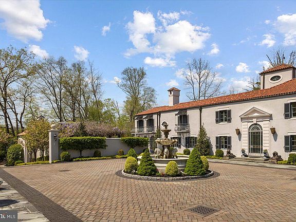 Nestled along the picturesque banks of the Delaware River, in the quaint town of New Hope, Pennsylvania, this remarkable 7-acre estate stands as a testament to unparalleled luxury and timeless elegance. Crafted by the visionary architect William Lawrence Bottomley, every facet of this property exudes a European charm that captivates the soul. As you meander up the Belgium stone driveway, anticipation builds, leading to a grand courtyard adorned with a magnificent 3-tier fountain. The facade of the European-style villa commands attention, setting the stage for the opulence that lies within. Step inside to discover a world of refined living spaces, where 5 bedrooms and 6 full bathrooms, along with 2 half baths, offer an oasis of comfort and sophistication. The meticulous attention to detail is evident at every turn, from the oak floors of the formal Dining Room, aglow with the warmth of a custom Venetian chandelier, to the expansive chef's kitchen, where culinary delights come to life amidst upgraded marble countertops and top-of-the-line appliances. Beyond the kitchen, a glass conservatory beckons, offering panoramic views of the tranquil Delaware River. Here, mornings are greeted with sunlight dancing across the waters, and evenings invite quiet reflection as the sun dips below the horizon. Entertainment knows no bounds in this estate, with a spacious living room adorned with 1920's parquet floors and a built-in wet bar, perfect for hosting gatherings large or small. Adjacent to the living room, a sunroom awaits, bathed in natural light streaming through nine sets of French doors that open onto the stone patio, where the heated pool, jacuzzi, and pergola create an outdoor haven for relaxation and enjoyment. Ascending the grand staircase to the second floor, three generously appointed bedrooms await, each boasting its own ensuite bathroom. A handsome study with built-in Mahogany bookcases provides a quiet retreat for work or leisure, while the primary bedroom exudes luxury with its gas fireplace, Juliet balconies, and built-in speakers. For guests seeking privacy, a bonus guest suite offers two spacious bedrooms with ensuite bathrooms and a private entrance, ensuring comfort and convenience for all who visit. No expense was spared in the 2016 renovation, ensuring that this estate remains a paragon of luxury living. With easy access to New Hope, Lambertville, Philadelphia, and Princeton, this property offers the perfect blend of tranquility and accessibility—a rare gem awaiting its discerning owner.