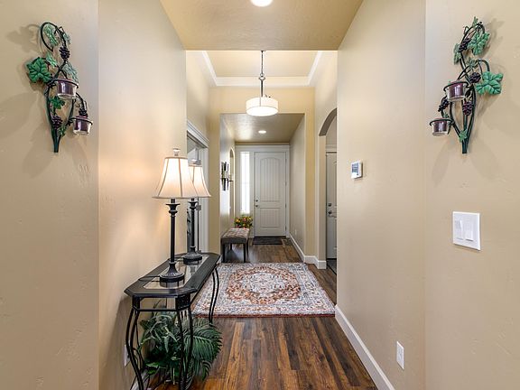 Fully furnished or partially furnished home. This is your chance to rent a fully furnished home in Sutherland Heights built by one of the best in Boise Tresidio Homes. There is customization throughout and a reflection of quality at every corner. Hardwood floors grace the main entrance which leads into a masterfully designed living and kitchen area featuring coffered ceilings, a gas fireplace is set against a stone hearth, and expansive windows facing east looking onto a covered patio and fully fenced yard. The cabinetry is of knotty alder and is set against the backdrop of granite countertops. The colorization of all surfaces reflects upgrades and refinement. You'll enjoy a large island well-suited for casual dining. Complete the kitchen space with all stainless steel appliances, a gas stove, and a double-door refrigerator. There is also a nook for formal dining at the far end of the kitchen. The living room boasts a large-screen television to watch your favorite game or movie. This space, as is the remainder of the home, is tastefully decorated. Walk out and enjoy a delightful enlarged cement patio with furniture for lounging and even a gas grill. A portion of the patio is covered as well with a smaller television perched on the roof edge. The tenants will appreciate carefree lawn service as that is handled by our landscaper at no extra charge. The yard is nicely landscaped with bushes, flowers, and trees. The master bedroom is spacious and allows for a king-sized bed. Besides a very ornate dresser, two nightstands adorn either side of the bed. There is even a television on the opposite wall in the bedroom. A doorway leads to the patio from the bedroom. The master bath is of solid wood cabinets carrying forward the theme from the kitchen with knotty alder and granite. A large tiled shower allows you to start your day. There is ample closet space for those demanding more room than typical in this size home. There is a clever design incorporated with a passageway leading to the laundry room. Yes, this home is equipped with top quality washer & dryer Use one of the other bedrooms for a home office or as a bedroom. A shared bath serves these other sleeping areas. Out to the garage, you will find room for two large vehicles plus a side space for a motorcycle or bicycles. This home is in Meridian off S Eagle Rd and minutes from I-84, the convenience of shopping and medical care. Sutherland Farms affords its residents a large park with playground equipment, jogging, dog walking, and a fishing pond. This rental will be available August 12th. A one-year lease is desired. If a furnished home is what you desire, this is an exceptional choice... complete with Office furniture, televisions, kitchen and dining room, and patio furniture. Tenant responsible for all utilities. Landscaping is included with rent. Rent is $2895 per month with a twelve-month lease. RVs or trailers are allowed for only loading and unloading.