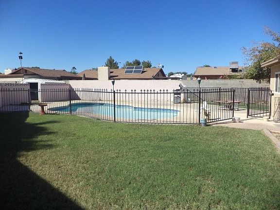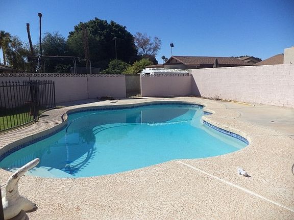 Great family home for lots of different activities. 3 bedrooms, family room/kitchen, AZ/exercise room, hobby room , beautiful, separately fenced pool, good sized yard. Laminate flooring in 3 bedrooms. Enter through large, private covered patio. Pool has "barracuda" cleaning system.