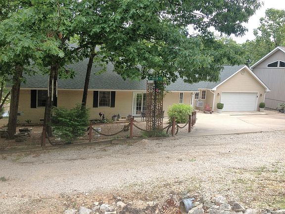 Ranch style. 206 lake front,located at 5 mile mark in Lick Branch Cove, three sides brick and back vinyl siding, 2 car garage attached, paved driveway, Furnace and central air 3yrs, roof 9yrs. Attic above garage for storage. Gas fireplace. Eldon school district.