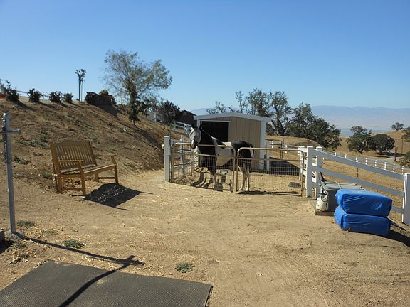 Breath taking Views! This beautiful upgraded home and estate property has hillside and city night light views overlooking the San Joaquin Valley. There are 3 bedrooms, 2 1/2 baths, an office, and formal dining room. The home features granite counters in kitchen and bathrooms, stone stack fireplace in the great room and master bathroom, upgraded laminate flooring, tile flooring, tiled showers, custom cabinets in the kitchen and baths, beautiful light fixtures, three car garage and a place to park your RV. The beautifully landscaped and maintained acreage has a 2 stall barn, a run in barn, turn out area, riding ring and two Tuff sheds. The 2.37 acres has been fenced with a classy 3 rail white vinyl fencing. Equestrian trails border the property with access to numerous trails. Stallion Springs Community amenties include golfing, fishing, riding and hiking trails, pool and recreation center.