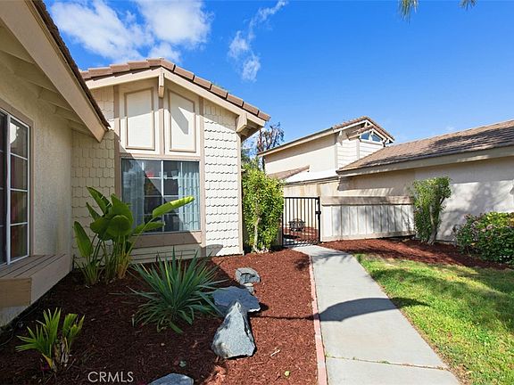 Welcome home to The Villages neighborhood of Temecula. This lovely single-level home features 3 bedrooms, 2 baths! The vaulted and wood-beamed ceiling in the Great Room gives this home the feeling of being much more expansive than its 1235 sqft. This inviting room features a fireplace to gather around in the winter. The generously sized master bedroom is filled with light thanks to the large patio door and beautiful high windows. This room features vaulted and beamed ceilings, a ceiling fan, and direct access to the covered patio, the perfect spot for a quiet morning cup of coffee or a relaxing beverage in the evening. The en-suite bathroom is lovely and bright and features beautifully coordinated fixtures. A secondary bedroom offers direct access to the outside, and the sliding door floods the room with natural light. The 3rd bedroom is well-sized. Shopping, restaurants, and Starbucks are conveniently located nearby at the Village Grove shopping center.