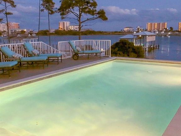 Amazing views from the Southern Puffer This luxury waterfront home situated on exclusive, gated Ono Island is made for your family and friends to enjoy. This 6201 SF home has multiple living areas for entertaining all ages. This home features 6 bedrooms, exercise room, 6 1/2 baths, formal dining room, kitchen, separate breakfast room, rod room, open bar and much more. Beautiful pool and new Trex decks on every level overlooking Old River and views of the Gulf of Mexico. With easy access to the Gulf, this property is in the widest area of Old River with deep water right off the boathouse dock. New interior & exterior paint, updated baths, refinished wood floors and comfy welcoming furnishings make this house bring your toothbrush ready! New AC units, renovated pool, driveway pavers, new cargo lift, updated bathrooms, wood floors refinished, hurricane shutters (some electronic), new ice-maker in kitchen, and new boat lift make this home a great deal!! Ask your agent for the Southern Puffer Features Sheet. Lower level - Living area or rec room, rod room w/open bar, 2 bedrooms with baths, exercise room, laundry room & cargo lift to main floor. Main floor - Great room, kitchen, breakfast room, formal dining all open floor plan, Master suite, 2 additional bedrooms w/baths and powder room. Large rooms with plenty of storage. Upper level - Bedroom with bath, this 2nd master suite has a balcony and gorgeous views. Property is in Zone X, no flood insurance required. Too much to describe, must see!
