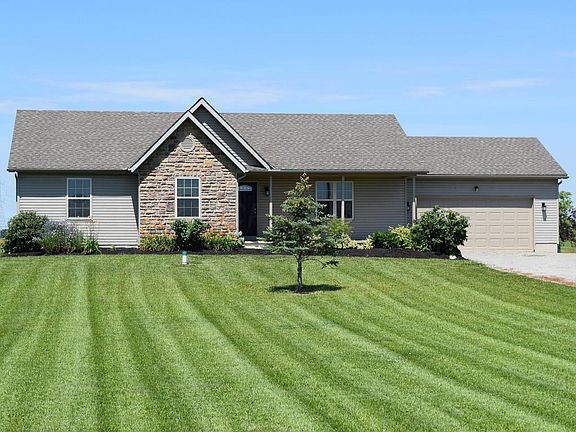 Custom ranch with vaulted living room and island kitchen with new high quality stainless appliances and dinette with 3 walls of windows and patio access. 1st floor laundry room. 1500 sq. ft. poured wall basement is designed to be finished living space, doubling your footage. Large master suite with a full bath and generous walk in closet. Front sitting porch and expansive back patio. Beautiful surrounding country views. Quiet road, great place for kids and hobbies. PH30525