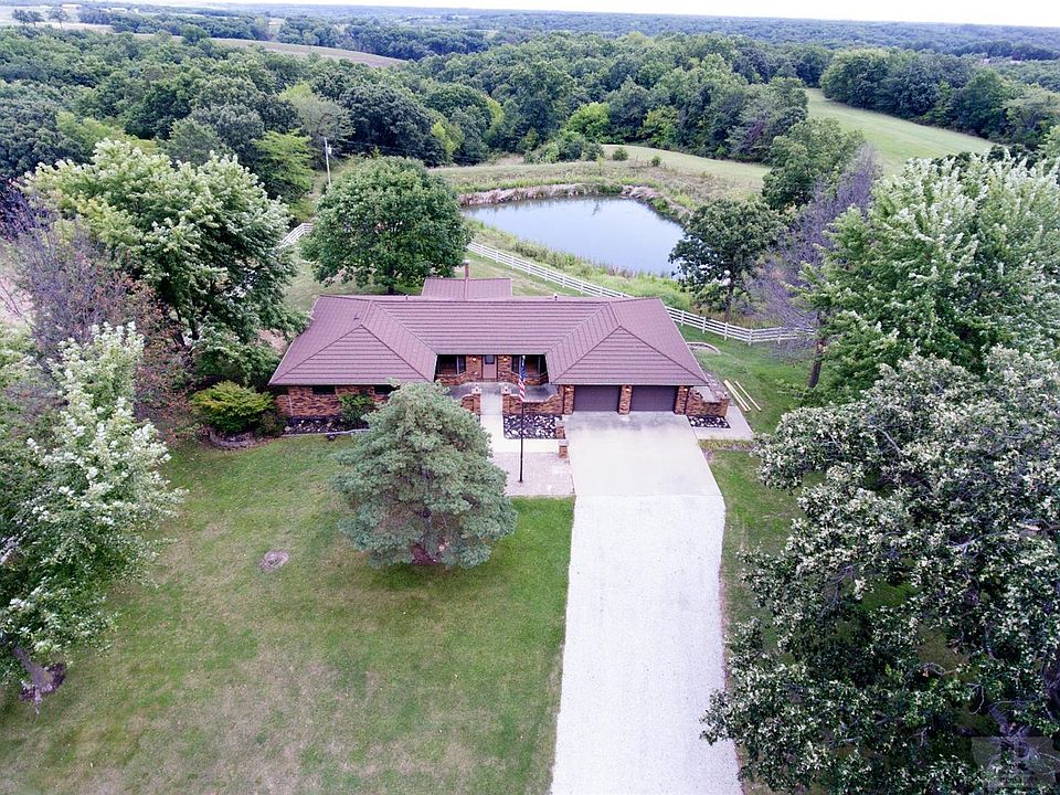 6.26 acres m/l with Executive Ranch Home on hard surface road over-looking the properties pond and timber. Farm comes with the 3 bedroom, 3 bathroom Executive Home, Pole barn and a 1-bedroom cabin with a finished loft to give you an added bedroom. The cabin is a great rental property, guest house, VRBO property or whatever you can dream it can be. The home has many upgraded features, including newer ground source heat pump, solid surface counter top, newer refrigerator, dishwasher, new range and microwave. Imagine sitting on your large wrap around deck with your favorite beverage at sunset. You hear the birds, see the deer meandering to the pond for a drink. You enjoy the time so much you are amazed to see the stars pop out of the sky, there are so many stars. You can't believe you haven't moved before now. You retire for the evening to your bedroom just a few steps away. You deserve experiences like this. Come and enjoy the simple things.