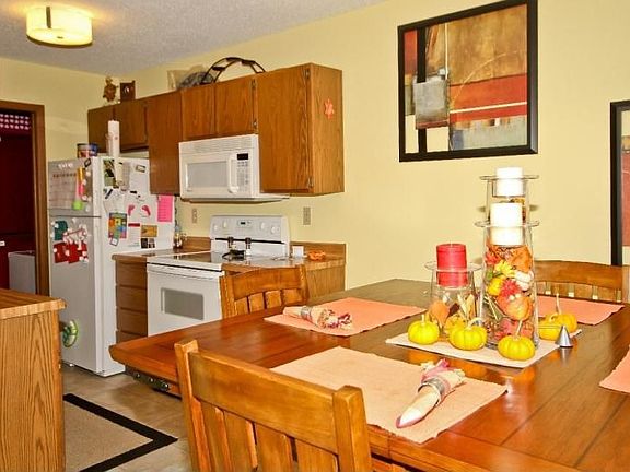End unit town home with three bedrooms up! Features a half bath on the main level & full bath upstairs. Updated with newer shingles, new hot water heater, new electrial panel, new dishwasher, new kitchen faucet, new light fixtures, & new flooring in kitchen, dining, laundry, baths & entry. Fully fenced yard, patio, new landscaping & new garage service door & window. No specials!