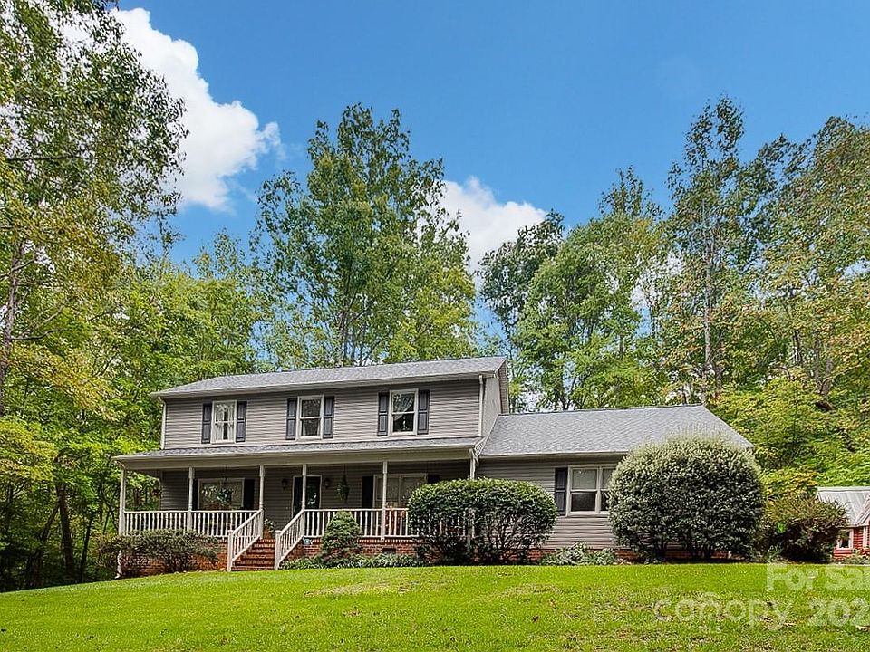Beautiful home in Oak Hollow West! Spacious home boasts hardwoods in the foyer, living room & den. Huge kitchen boasts tons of cabinet & counter space, cozy breakfast area, an eat-at bar, island & black stainless appliances, all remaining, including refrigerator! Laundry room with storage cabinets & guest bath on main. Upstairs offers plenty of space! Primary bedroom features a walk-in closet & full bath with double vanity & tub/shower combo. Two additional nice sized bedrooms, an office & full bath. Spend the fall evenings on one of the three covered porches! Fantastic back yard space! Cute as a button custom built one room playhouse is wired & has A/C ! Double garage with large sink & storage cabinets. Privacy awaits on this 1 acre lot in a super convenient location!