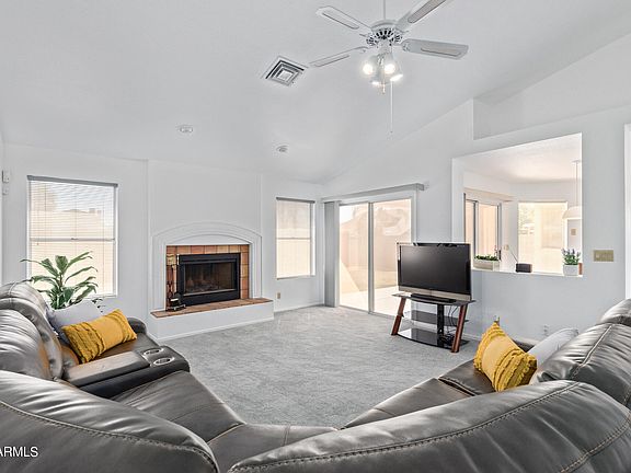 The search is over. Your new home is finally on the market! NO HOA This 3 bed, 2 bath plus den single-level property is located in a beautiful Mesa neighborhood featuring a 2 car garage, desert front yard, and great curb appeal! Captivating floor plan showcases vaulted ceilings, neutral paint, bay windows, and plush carpet flooring in all the right spots. Enjoy entertaining in the formal living/dining room combo! Also includes a wood burning fireplace family room! Cook delicious meals in the eat-in kitchen featuring recessed lighting, wood cabinets, and stainless steel appliances. Main retreat enjoys a walk-in closet, private exit, and bath w/dual sinks,new updated shower, and tub. Outback, you have a Lg covered patio, grass, and endless blue skies! Don't wait any longer! Must see