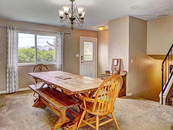 Come see why this 4 bedroom, 2 bath home on a large corner lot should be your new home! This tri-level home has 3 bedrooms upstairs and a huge lower level master bedroom suite with large walk-in closet. The beautiful master bathroom has a jetted tub and walk-in shower. The open concept dining/kitchen allows for great entertaining space, which flows right into the family room. The backyard has a great entertaining space with a patio, above ground pool, new picket fence, and RV parking. Beautiful views of Mt Garfield from your shaded front yard top off this great home!