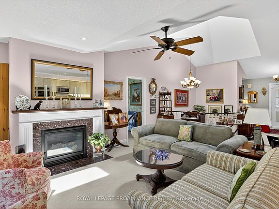 Discover an exceptional opportunity in this Peterborough condo bungalow, perfectly situated for buyers seeking a serene yet vibrant retreat. Nestled in the desirable Earl Gael enclave near East City and Lakefield, this 2800 sq ft home offers a rare combination of comfort and convenience plus, NO pet restrictions! With three bedrooms, three ensuite bathrooms, and two cozy fireplaces (one on each level), this well-built condo caters to a relaxed lifestyle. The open-concept design features a kitchen with an island, ideal for entertaining. Enjoy seamless indoor-outdoor living with walkouts from both the main and lower levels, leading to your own private garden. The cathedral ceiling includes a skylight over an elegant curved staircase to the lower level, showcasing a spacious entertainment area, perfect for billiards and social gatherings, along with a wet bar and food prep area for versatility. The bright lower bedroom includes a large walk-in closet and 3-piece ensuite. There is plenty of storage and a convenient workshop for small projects, along with a main floor laundry room for added ease. The double garage can serve as an alternative workshop. Adjacent to the Peterborough Golf and Curling Club, residents can engage in various social activities, enhanced by a complimentary social membership valued at $500 for those who purchase within the first 30 days. Current condo fees are $925.82 due to a special assessment for rebuilding the reserve fund, reducing to $618.63 starting June 2026 offering a $300 monthly savings! Enjoy nearby amenities, including the Trent University Wellness Centre and local shopping, all within a quiet, preferred area of the city. This condo isn't just a home; it's a lifestyle choice, blending a tranquil setting with easy access to outdoor adventures and community activities. Don't miss this chance to experience it all!