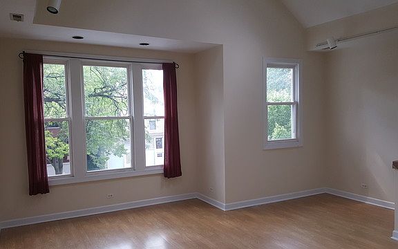 Beautiful rehabbed unit with lofted cathedral ceilings, hardwood floors, central heat and air and deck overlooking large yard.