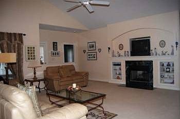 Quaint cottage style home in Stonehouse!Light filled flr plan w/large open spaces & vaulted ceilings;1st flr Mster Suite;hrdwd flrs,tray ceilings crown moldings & plantation blinds!All lawn care covered in HOA fee including irrigation!Stonehouse offers club house,pool,tennis,golf,pond,24 security.