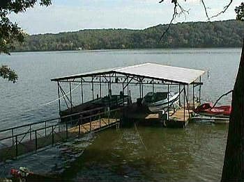 The house and guest house are located on top of the hill, while the waterfront lot and dock are just down the road. Guest house has 1 bedroom and bathroom, living room and kitchen. Located next to the house is the detached garage/workshop. The dock is a 2 well covered dock with 2 lifts, jet ski lift, and electricty. Picnic area next to the water. Must see to appreciate all the extras!