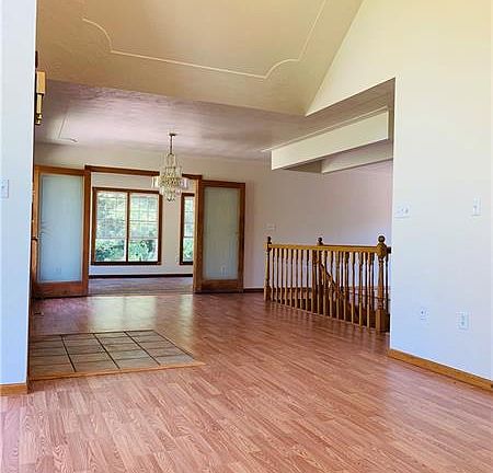 Beautiful brick home on over an acre and a half in a quiet, peaceful, country setting. Large windows allow for great light throughout the house. Large deck overlooking the backyard and woods. Third bedroom is currently used as a game room, equipped with plumbing for wet bar. Can easily be converted back to a bedroom. Basement is partially finished with space for a den, bedroom, kitchen, etc. Bathroom plumbing and shower surround are there and ready to go! Oversized garage can fit 3 cars. More parking on the large driveway. So much space and potential!
