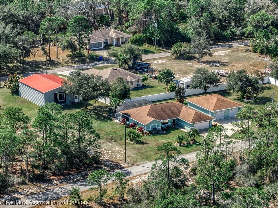 This property has it all! Located on over 1.25+/- fenced Acres in Leisure Lakes close to Lake Carrie (within a block) which has a public boat ramp and access to Lake June. The area is quiet giving full enjoyment to the homeowner. The property features a total of 3 garages- (1) is attached to the home (20x20) is currently used as a workout room, (2) is next to the home (30x40) is being used to park cars, (3)- sits at the rear of the property (36x50) stores the fifth wheel RV and boats. This garage backs up to Georgia Pine so it is assessible to both streets, making a pull through RV site easy and convenient. In addition to the garages, the yard has a caged, heated swimming pool attached to the home, several quiet and secluded areas, a fire pit area, marvelous raised vegetable gardens and a multitude of fruit trees, including lemon, peach, avocado, mango, lime, mulberry, blackberry, blueberry, cherry, grapes and pineapples. The entire property is irrigated with two wells. This is one of the few areas of Leisure Lakes that have access to Xfinity internet. The home speaks volumes to care and maintenance. All tile flooring, new kitchen cabinetry, granite counters, new A/C system, updated baths with granite, water system with reverse osmosis. See Attached document for additional updated items. There is definitely pride of ownership here with nothing left to do or add.