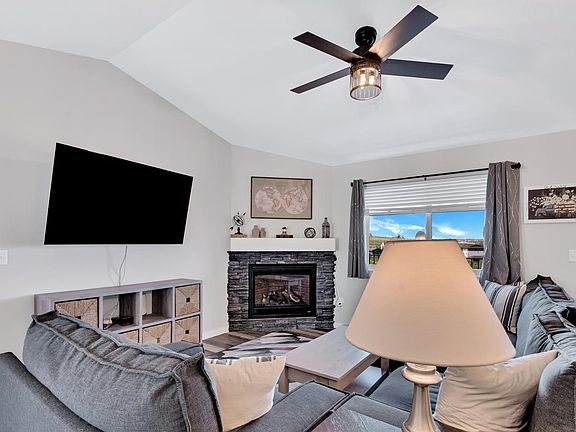 Welcome to 3054 Caymus Drive, a meticulously maintained, one-owner home built in 2022 in the desirable Elks Crossing subdivision. This stunning residence offers breathtaking views and features an open concept design with vaulted ceilings, granite countertops, stainless steel appliances, and a large kitchen island. The main level includes two bedrooms, a master suite with an ensuite featuring a tiled shower and walk-in closet, a full bathroom, and main floor laundry. The walkout basement includes a spacious family room, two additional bedrooms, a full bathroom, and ample storage. Enjoy the professionally landscaped yard with a sprinkler system, sod, rock edging, and a deck for outdoor living. Additional highlights include a three-car heated garage providing ample space for vehicles and storage. Conveniently located close to shopping, schools, medical facilities, the Elks Golf Course, and Ellsworth Air Force Base, this move-in ready home offers both luxury and convenience. Don't miss your chance to make this exceptional property your own!