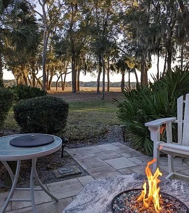 Enjoy sunset views all year long! This rarely available end unit, 3BR, 2.5BA townhome offers panoramic views of the marsh, golf course and intracoastal waterway. Tucked away on a quiet, canopy tree-lined street in the desirable Club Villas community of the Amelia Island Plantation resort. This villa is updated, furnished, and turnkey for use as a short-term rental, island getaway, or primary residence. A 3rd bedroom/study/workout room was added in 2021 increasing the living space to 1,748 sq ft. ALL NEW features include Anderson A Series Sliders, custom kitchen island (9’x4’) and bar sink, pavers added front and back, HVAC, water softener, stainless appliances, electrical panel and ceiling fans in all three bedrooms. Grab a good book, blanket, and get cozy by the firepit on one of these cool evenings -- and take in that view!
