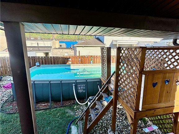 Outside, enjoy summer fun in the above-ground pool, a detached garage for parking and projects, a fenced yard for pets or play, and inviting front and back porches to relax. Located close to schools, shopping, and dining — this home offers space, functionality, and future potential!