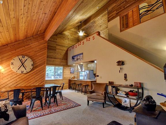 Well built three bedroom chalet in Government Camp. Borders National Forest! Tons of wood, windows and high vaulted ceilings fills this light and bright chalet with an open floor plan. Currently a nightly rental, this home features a bedroom on every level! Kids will love the downstairs bunk room and family room while the adults are upstairs. Open upstairs loft too. Hot tub on the deck! Walk to the brewpub or to Ski Bowl! 75 min. to PDX