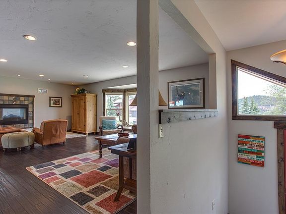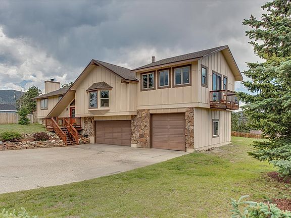 Views of Mt Evans and Bergen. Main level features open kitchen/family/eating space with hand scraped oak hardwood floors, fun, modern updated kitchen, master bedroom with 5 piece bath and 3 secondary bedrooms (one with its own 3/4 bathroom) and full bath. Lower level has rec room, 3/4 bath, laundry and 5th non-conforming bedroom/theater room. Cozy up to the wood-burning fireplace in the basement or enjoy the double sided gas fireplace in the master and family rooms. All bathrooms have radiant floor heat, A/C and whole house fan helps keep things cool in the summer. NEW furnace and A/C in 2015. Roof approx 5 years old. Hard to find large, flat lot. Also hard to find in Evergreen..finished 3 car garage with RV parking inside. Plenty of room for more vehicle storage, south facing driveway is a huge plus (and it's not steep!). 7 minutes to I-70, less than 5 minutes to Evergreen Lake, Stagecoach Park and one of the best dog parks around.