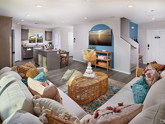 NEW CONSTRUCTION in Winchester - This 1,378-sf home with a California Bungalow façade has 3 bedrooms and 2.5 bathrooms and ALSO INCLUDES; REFRIGERATOR, WASHER/DRYER, WINDOW BLINDS AND BACKYARD LANDSCAPING! The Island kitchen with island eating area has New Valle Nevado granite counters, built-in stainless-steel appliances and a walk-in pantry. The interior comes complete with White shaker style cabinetry throughout, lots of included recessed lighting, and carpet and vinyl flooring throughout. The downstairs includes a powder bath and upstairs the main bedroom with ensuite bathroom and walk-in closet, 2 additional bedrooms and full bathroom and a laundry room. There is also a direct-access two car garage PRE-PLUMBED for an electric car! This truly modern home has all the SmartHome features you would expect and, is LANDSCAPED AND IRRIGATED in the front and back yards. This community is situated close to park and freeway access. We anticipate a mid-July move-in and we can't wait to Welcome you Home!!