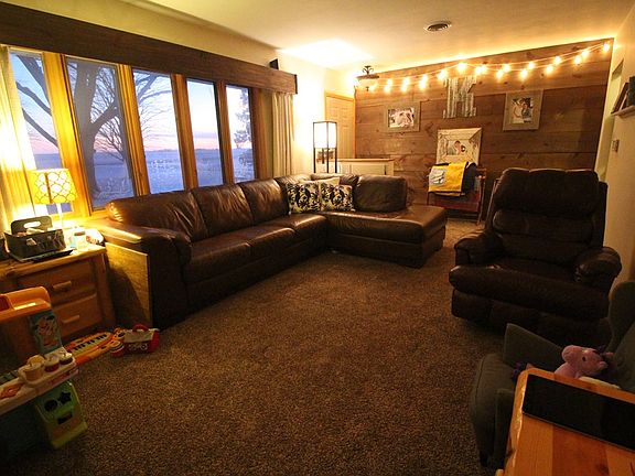 Picture perfect ranch home, conveniently located on a hard surface road close to Fort Dodge, Webster City, and Vincent. 3 Bedrooms on the main and a 4th non conforming bedroom in the lower level. Cozy family room with wood burning fireplace and built-in indoor grill. Full bath features a whirlpool tub and separate shower. 1/2 Bath in main floor laundry room as well. The outbuilding is 1860 square feet with 3 overhead doors and a new roof in 2016. The roof on the house was also replaced in 2016 and has a 40 year transferable warranty that includes labor.